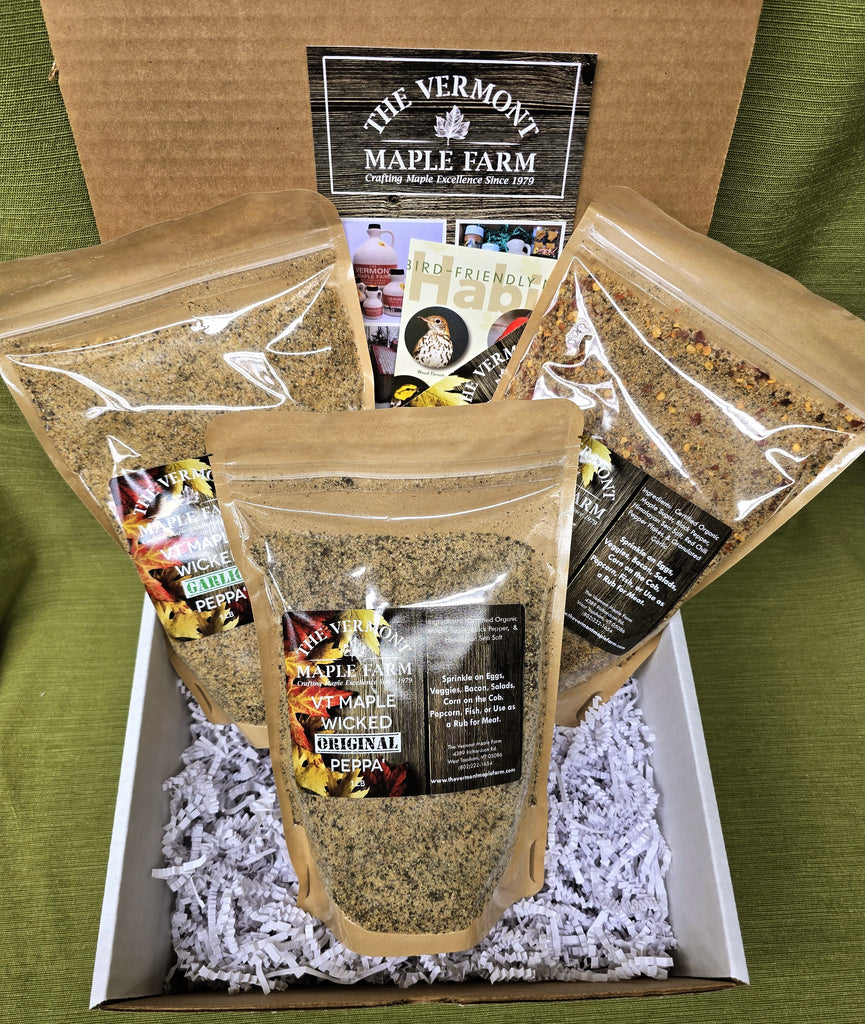 Introducing VT Maple Wicked Peppa' — the only seasoning that packs a wicked punch! The flavor is sure to make your taste buds do the peppa' dance. Add a burst of flavor to your culinary creations with VT Maple Wicked Peppa'! A unique blend of Vermont maple sugar and bold spices, this seasoning is sure to become an essential in your kitchen. Perfect for marinades, dressings, and much more!