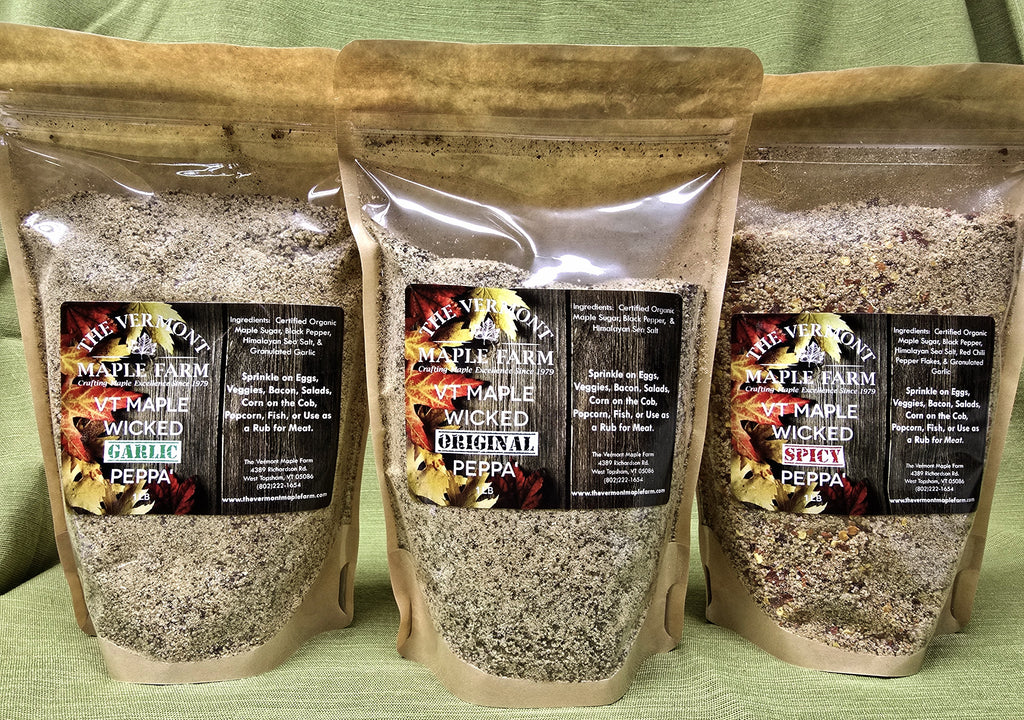 Introducing VT Maple Wicked Peppa' — the only seasoning that packs a wicked punch! The flavor is sure to make your taste buds do the peppa' dance. Add a burst of flavor to your culinary creations with VT Maple Wicked Peppa'! A unique blend of Vermont maple sugar and bold spices, this seasoning is sure to become an essential in your kitchen. Perfect for marinades, dressings, and much more!